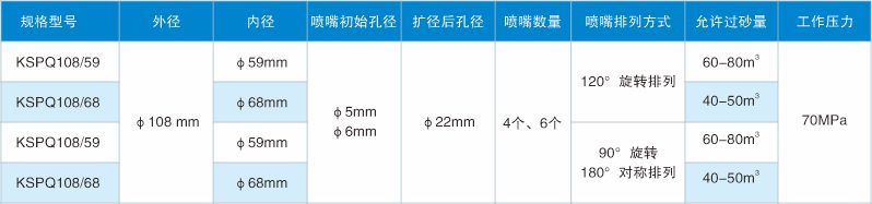 滑套擴(kuò)徑水力噴射器技術(shù)參數(shù):